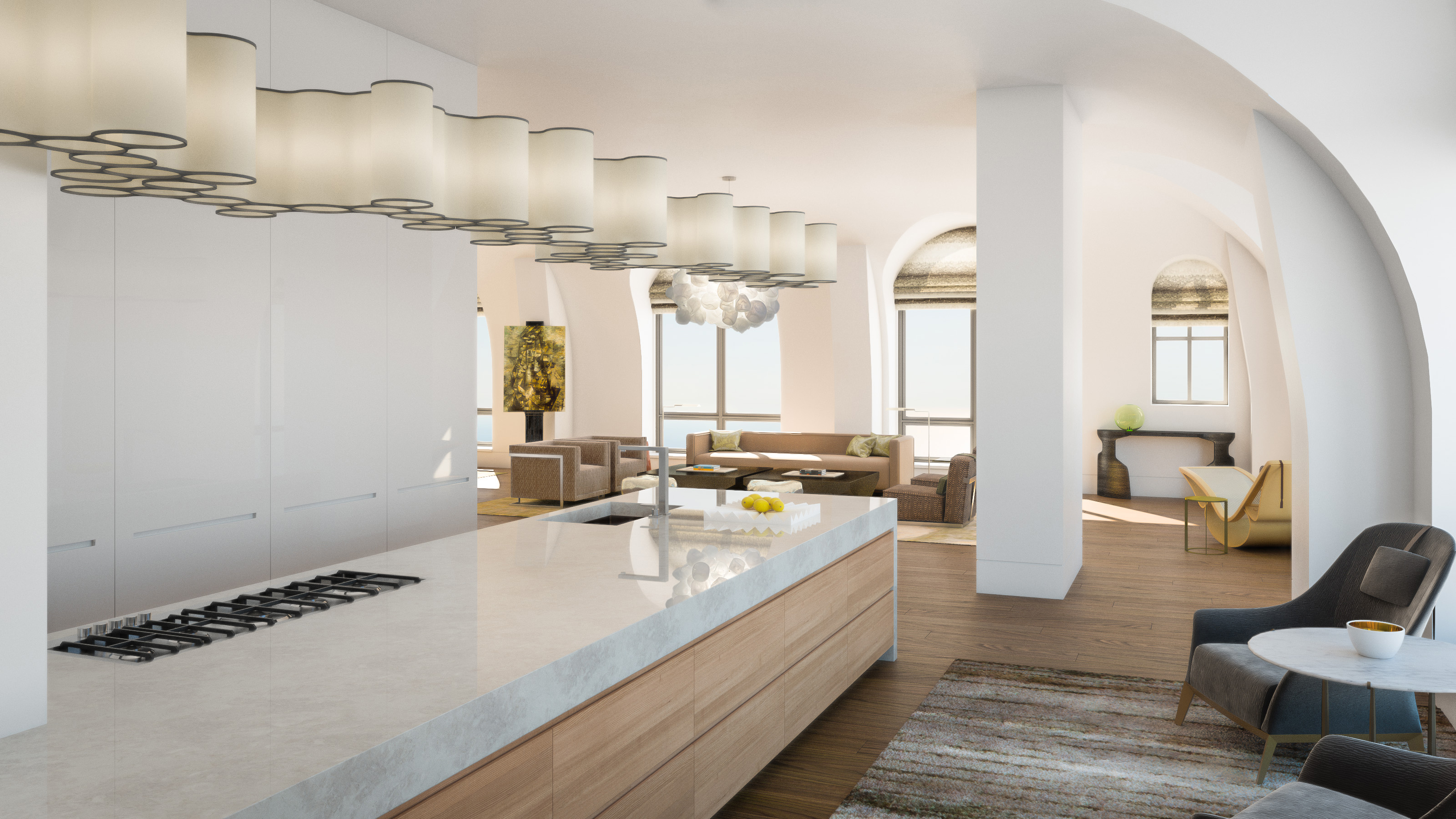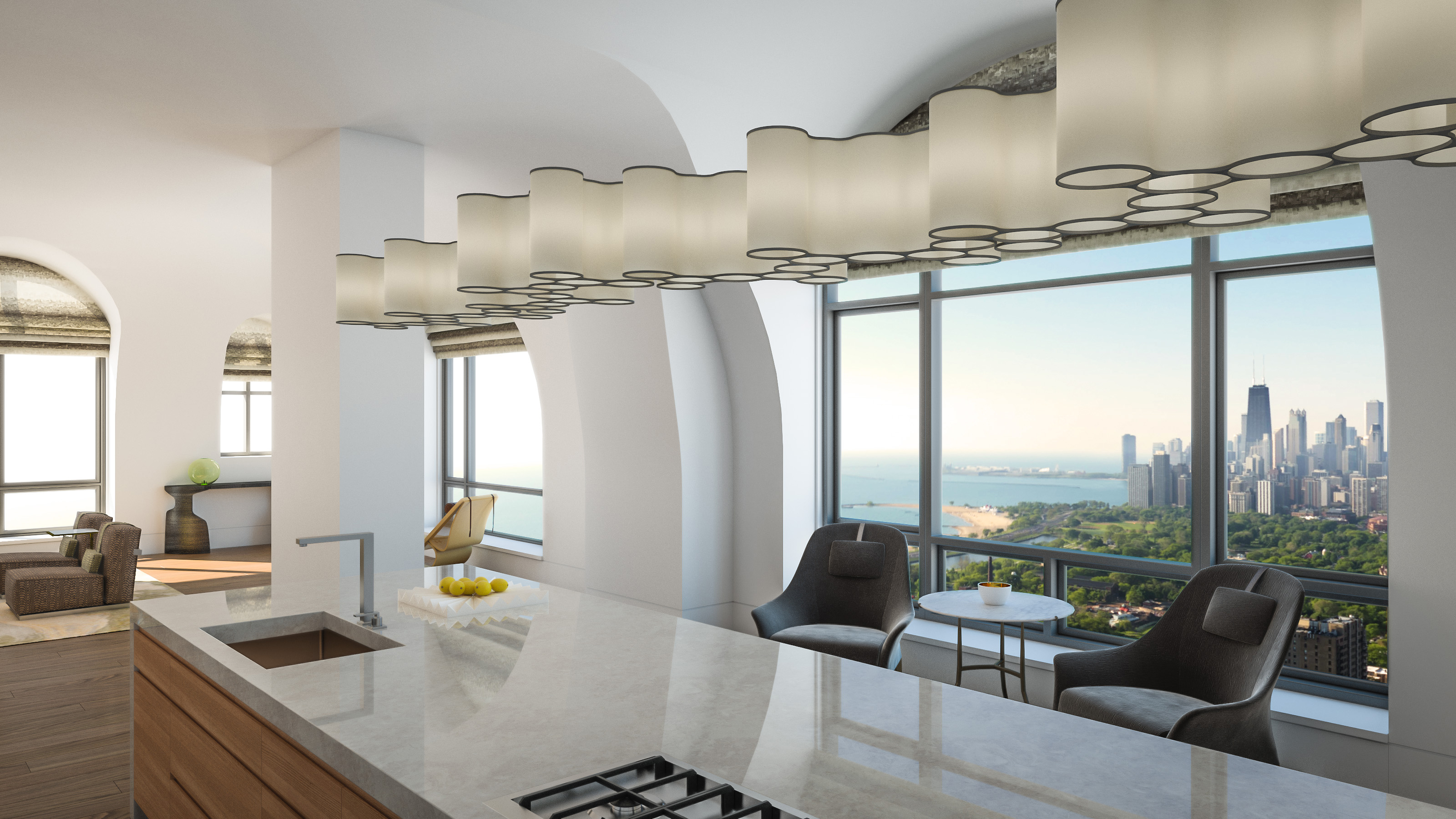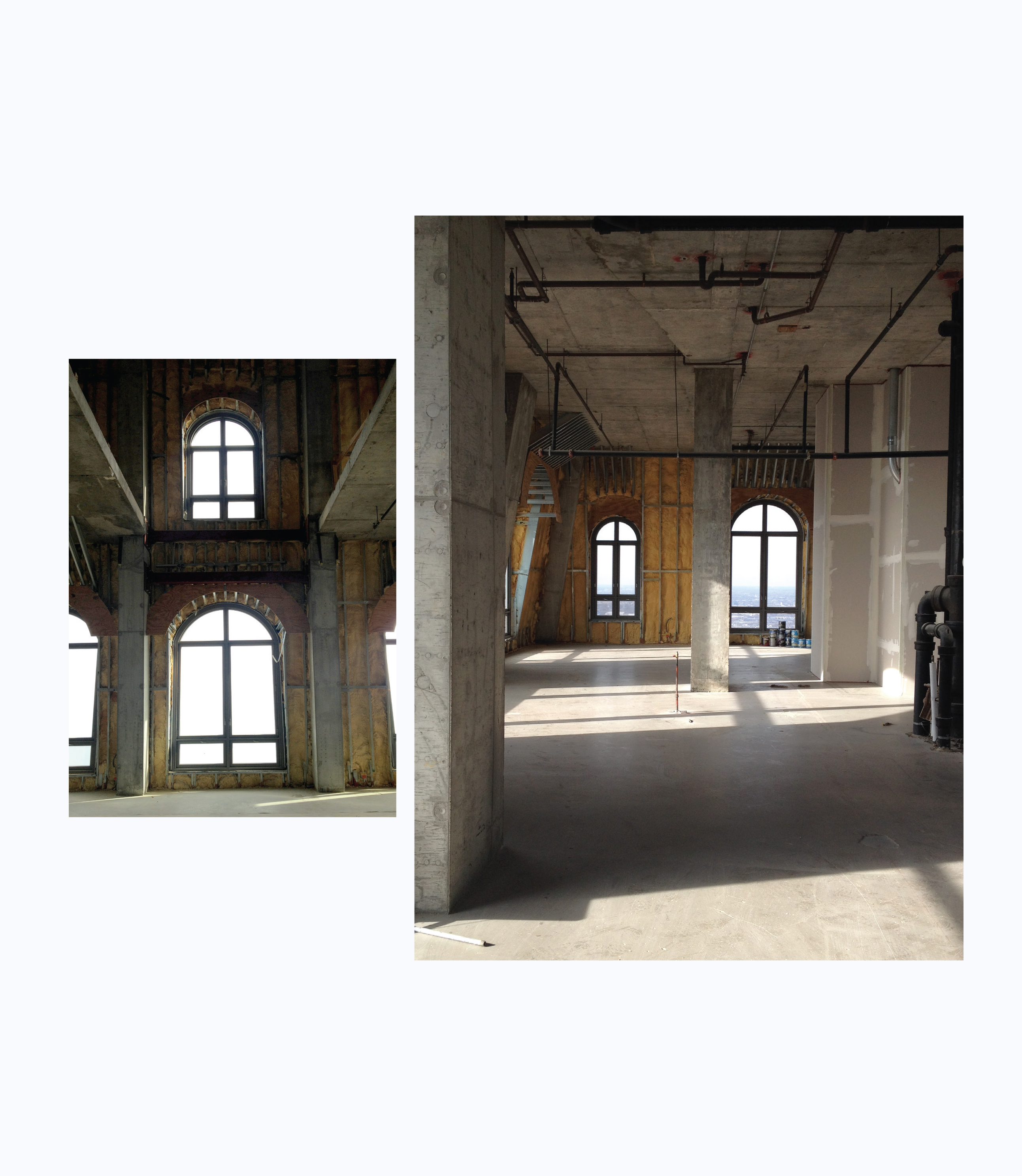 The conceptualized program for this raw, duplexed, 13,000 square foot space includes solutions to overcome irregular wall column spacing and slanting interior perimeter walls to accommodate an imagined art collection and window treatments. Space is programmed around existing plumbing and exhaust stacks, and extends visual axis to maximize sight lines. An SH Studio-conceived buyer profile aids in marketing the Chicago space.