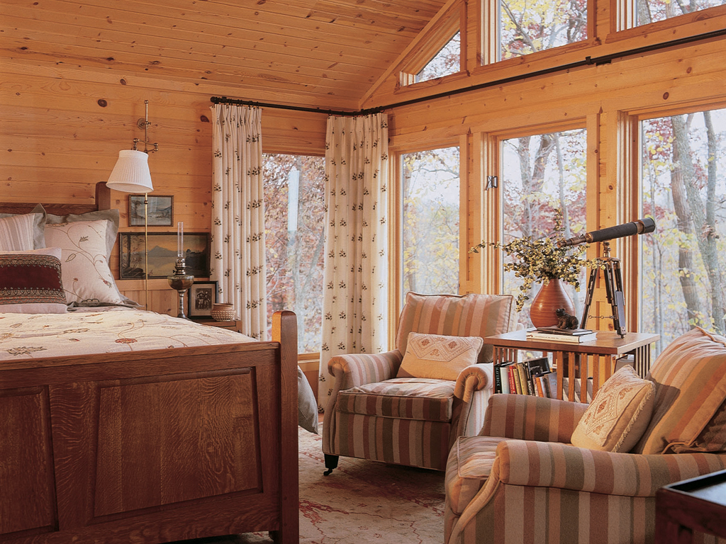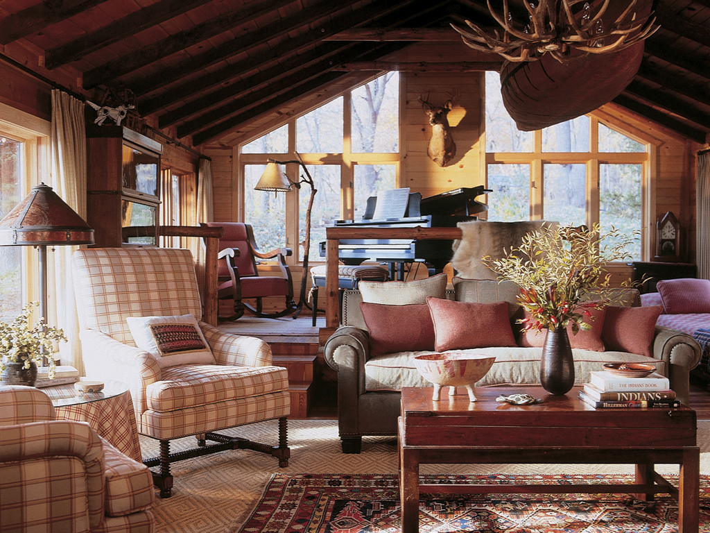 Rustic yet refined, this one-time trapper’s shack speaks volumes about its Mississippi River setting. And the message is clear: even the most casual weekend retreat can – and should – articulate the very same comforts and quality we expect of a primary residence. Here, the vocabulary includes patina, pattern and texture, layered atop warm woods, hand-embroidered fabrics, stenciled floors, and vintage textiles – all declaring a well-defined sense of place. A canoe floats above a carefully edited collection of objects and accessories gathered from around the world, including antique Oriental rugs. Together, they express sophisticated cabin coziness in singular style, and proclaim their readiness to welcome family memory-making.